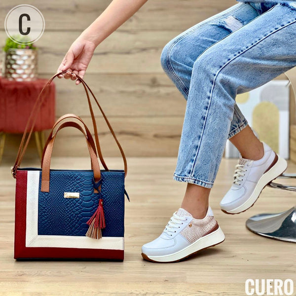 Combo versátil de cuero genuino que incluye bolso y bolic...