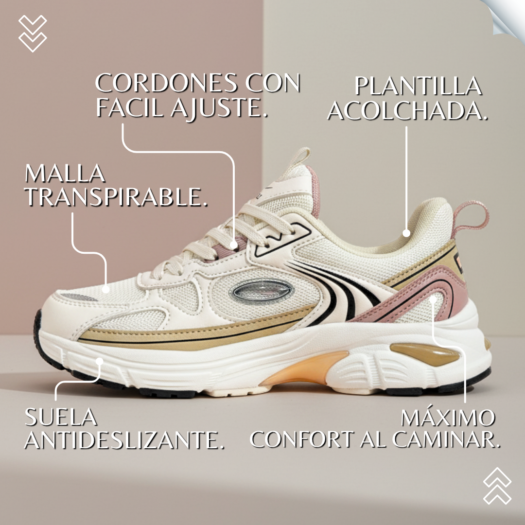 - Cordones elasticos de alto agarre que mantienen cada paso seguro.